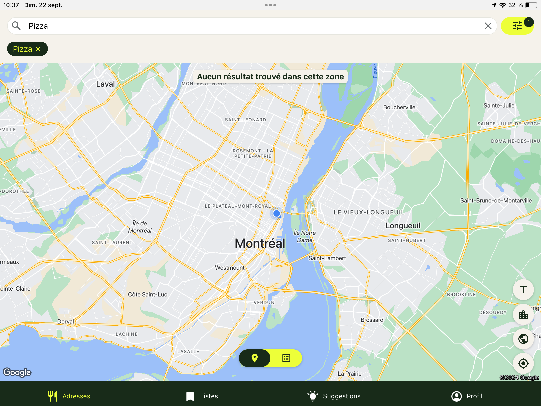 J’ai fait une recherche avec le mot-clé pizza à Montréal et curieusement cela ne donne aucun résultat pour toute l’île!